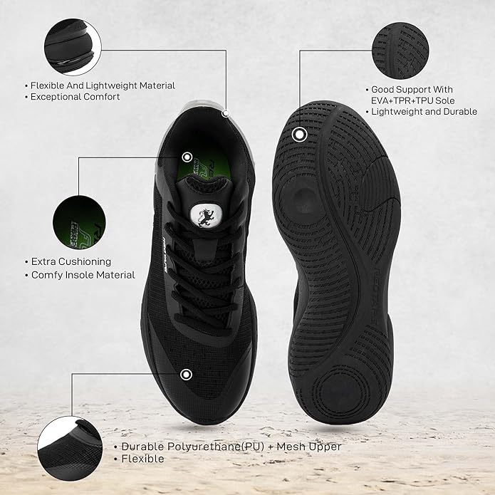 - Material: Sole - EVA+TPU+TPR | Upper - PU+Mesh | Insole material - Flow+Performance EVA Footbed