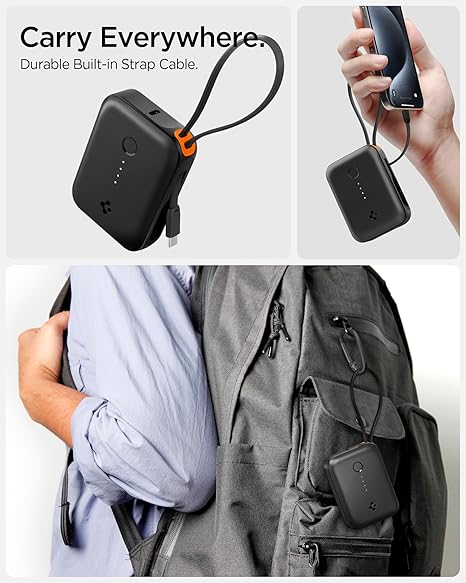 - Built-in USB-C Cable: No need to carry extra cables – with a built-in cable, you can charge on-the-go without the hassle