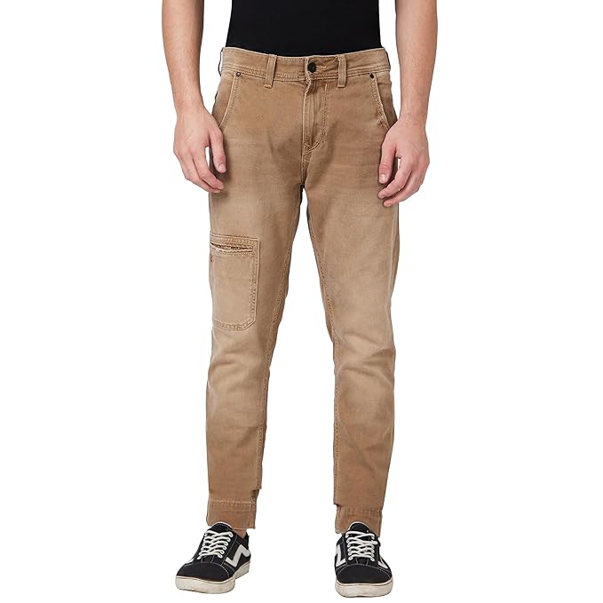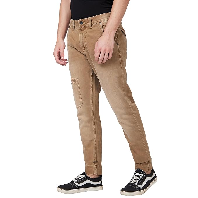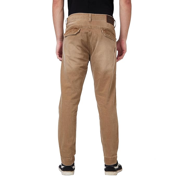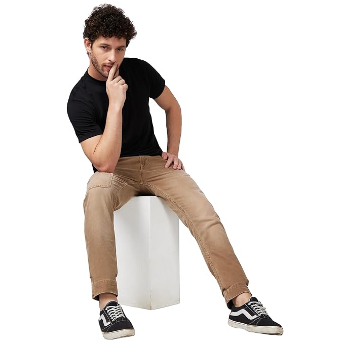Spykar High Rise Comfort Fit Narrow Length Khaki Jeans for Men