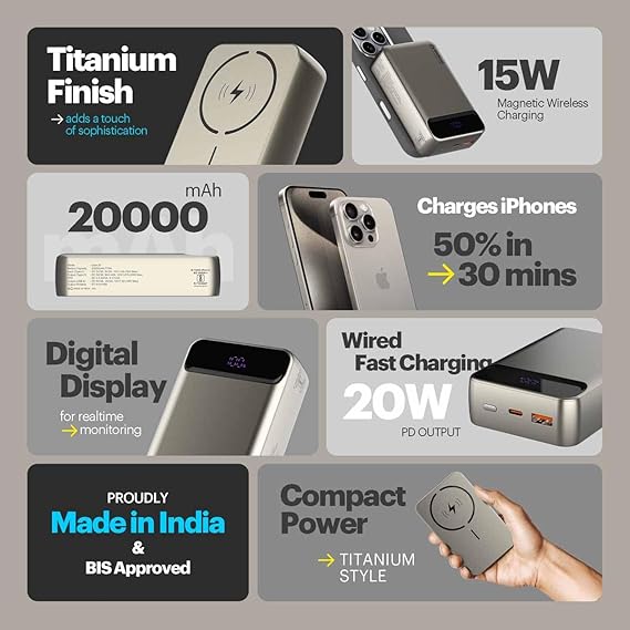 - [First Ever 20000mAh Magnetic Wireless Powerbank!]: Power and more power! The Click 20000mAh is the first of its kind, 20000mAh Magnetic wireless powerbank perfect to charge even your iPhone Pro Max multiple times over! Simply click to the back of your iPhone and start charging!