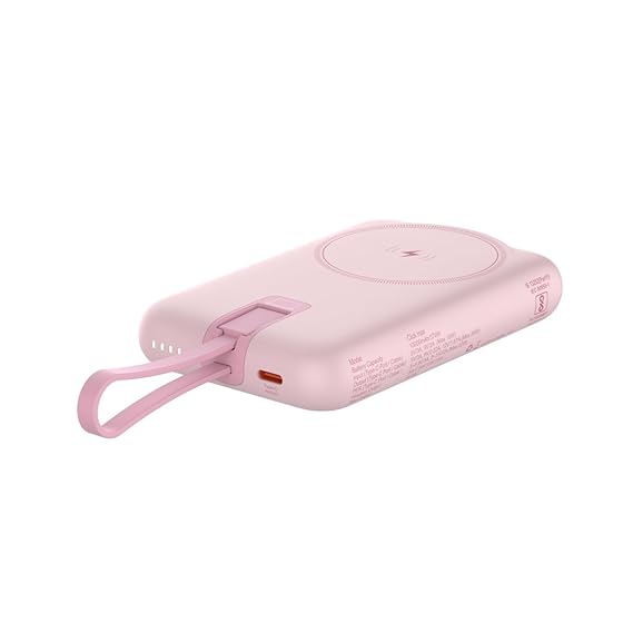 Stuffcool Click Max 10000mAh Powerbank with Built-in PD20W Type-C Cable to Fast Charge iPhones 50% in 30 Mins, 15W Magnetic Wireless Charging for iPhone 12/13/14/15/16 and AirPods Pro (Pink)