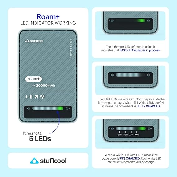 - [Proudly Made in India]:Roam + is BIS-certified and Made in India to be your ultimate travel companion.Designed and manufactured to meet the highest standards, this powerbank ensures safety and reliability with every charge.