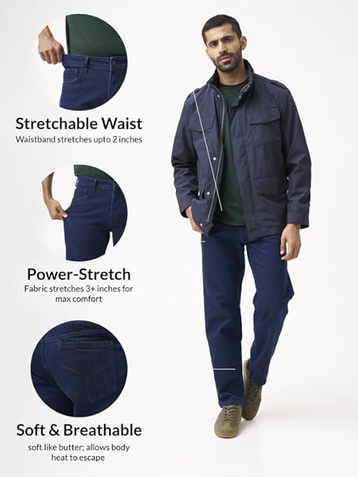The Pant Project Relaxed Fit Stretchable Jeans for Men | Mens Stylish Denim Cotton Pants (Indigo)