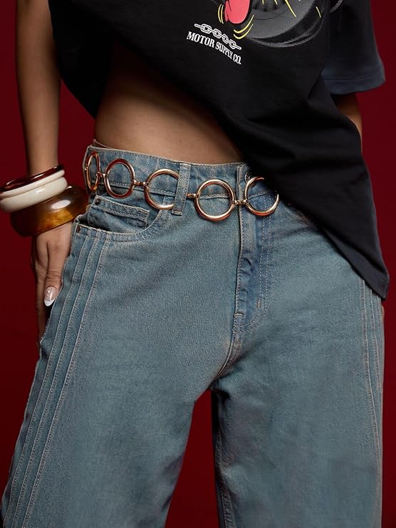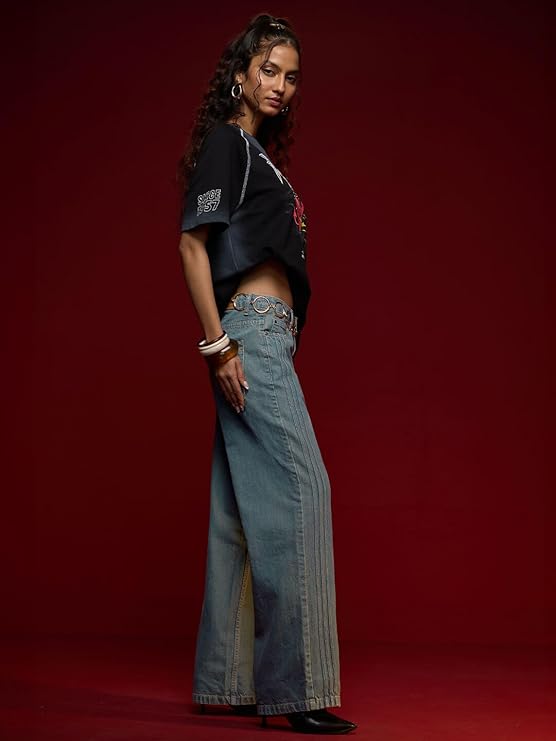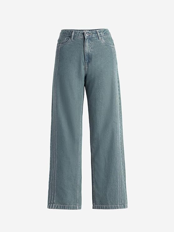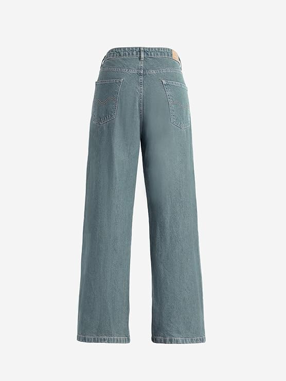 The Souled Store Straight-Fit Denim: Sapphire Women and Girls Buttoned Blue Solid Lightly Washed Straight Fit Cotton Jeans