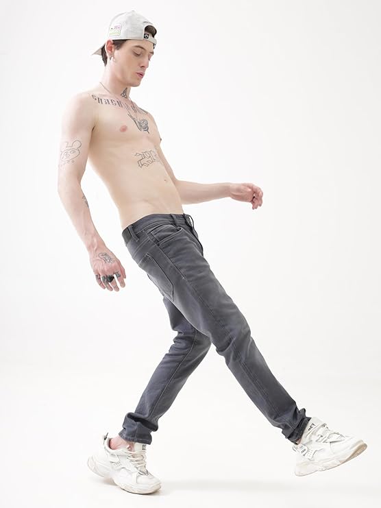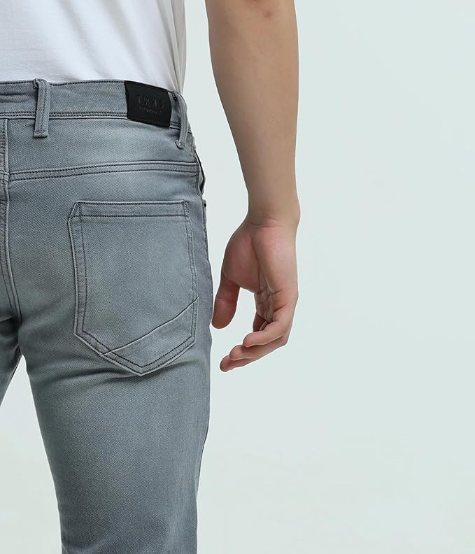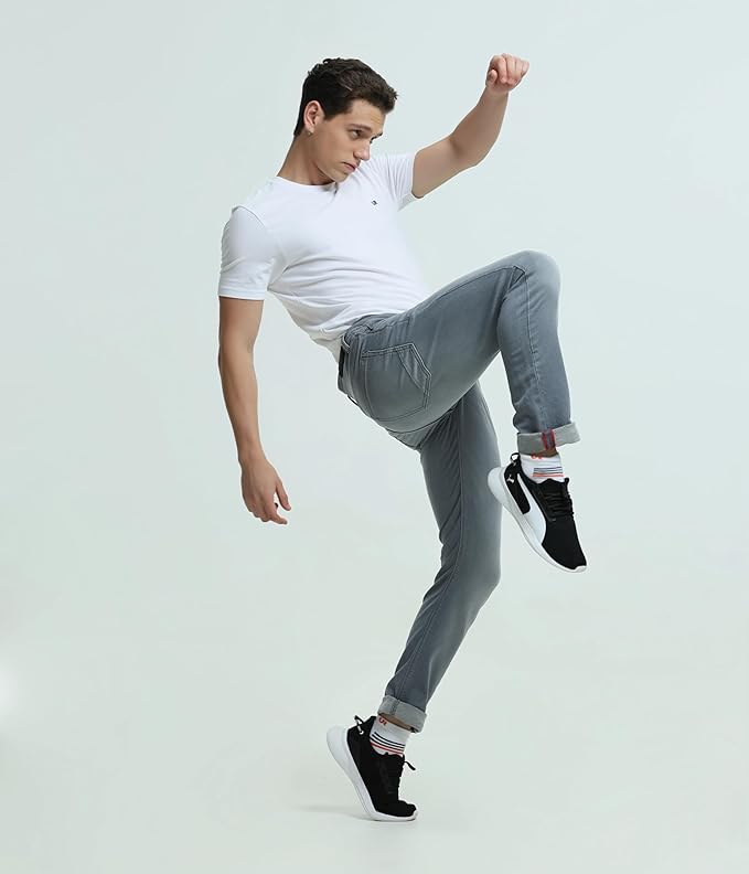 TURMS Men's Black Solid Mid Rise Stretchable Adventure Comfort Denim Pant Cotton Rich Jeans 30 Days No Wash Tailored Fit Casual Wear (Grey)