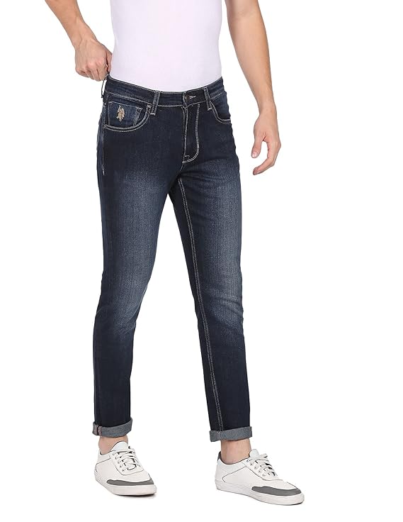 U.S. POLO ASSN. Men's Slim Fit Mid Rise Jeans (Faded Blue)