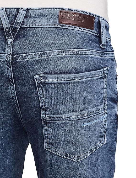 UNITED COLORS OF BENETTON Men's Slim Fit Mid Rise Jeans (Mid Blue)