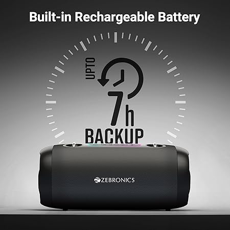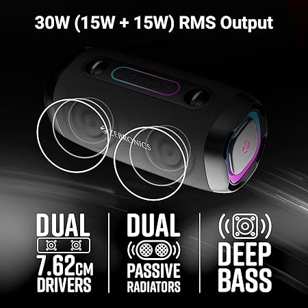 ZEBRONICS Sound Feast 85, Portable Bluetooth Speaker, 30 Watts, Upto 7 Hours Playback, Dual Passive Radiator, BTv5.3 | TWS | USB, RGB LED, Call Function, Carry Strap, Deep Bass (Black)